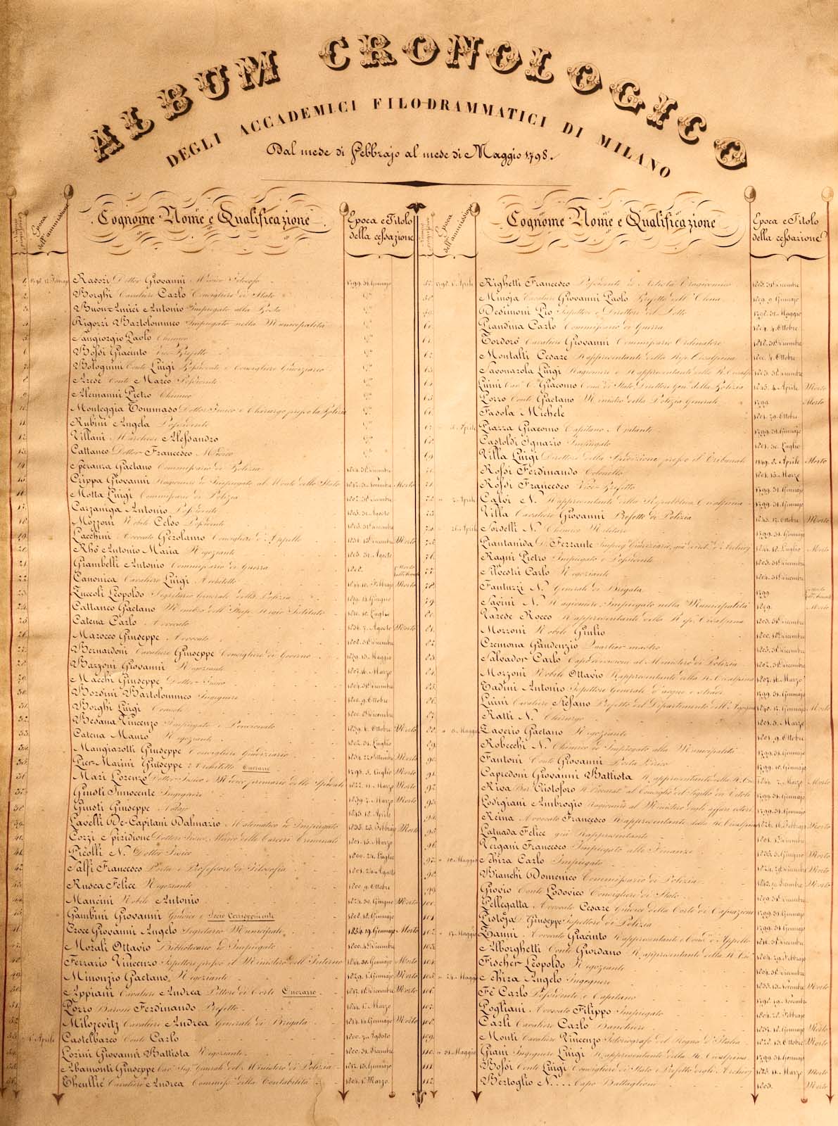 “L’Accademia dei Filodrammatici di Milano, iniziata nel 1796 e costituita nel 1798 sotto la denominazione di Teatro Patriottico, ha per oggetto di favorire lo sviluppo dell’arte e della letteratura drammatica con corsi di studio, rappresentazioni e premi.” L’Accademia è oggi retta da un consiglio di soci così composto: