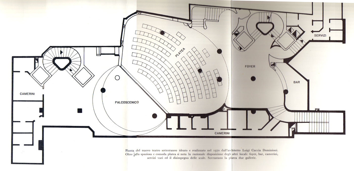 Il progetto della ricostruzione dell’intero immobile viene affidato all’architetto Luigi Caccia Dominioni e suo è anche il progetto del nuovo Teatro dell’Accademia dei Filodrammatici che riapre le sue porte nel 1970.