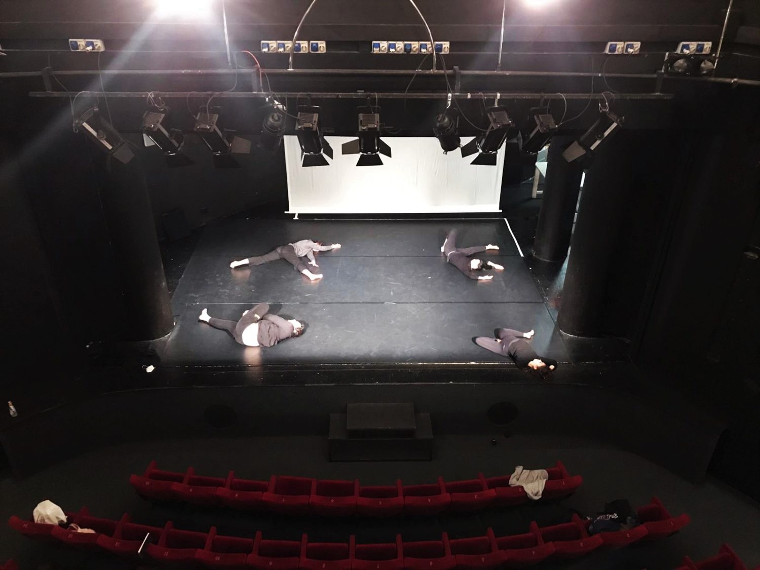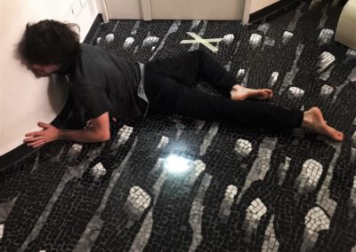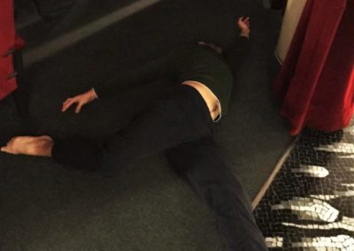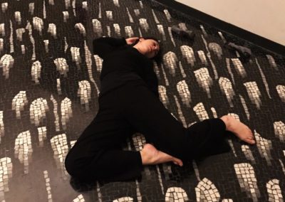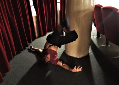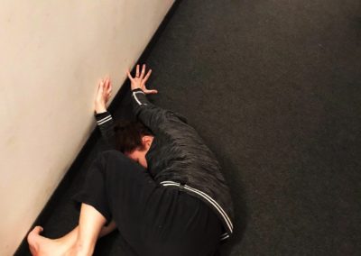 Alcuni momenti di riscaldamento prima della lezione di tecnica vocale a cura di Ambra D’Amico. In questo primo periodo dell’anno vengono utilizzati gli spazi del Teatro filodrammatici.