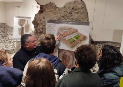 Con l’insegnante Erika Carretta gli allievi hanno visitato i resti del Teatro Romano che si trovano sotto la sede della Camera di Commercio di Milano. Ringraziamo la Camera di Commercio per le aperture gratuite al pubblico degli spazi del Museo.