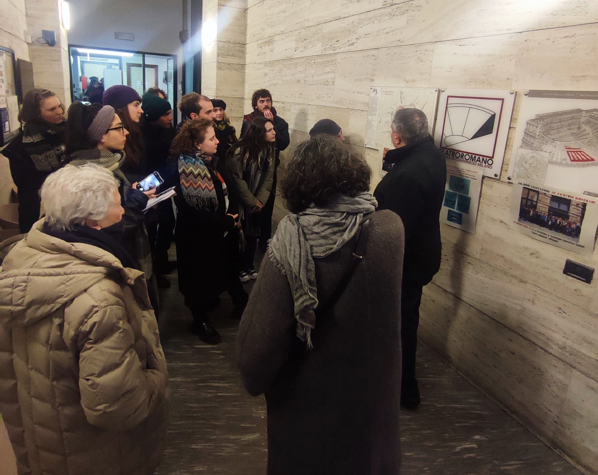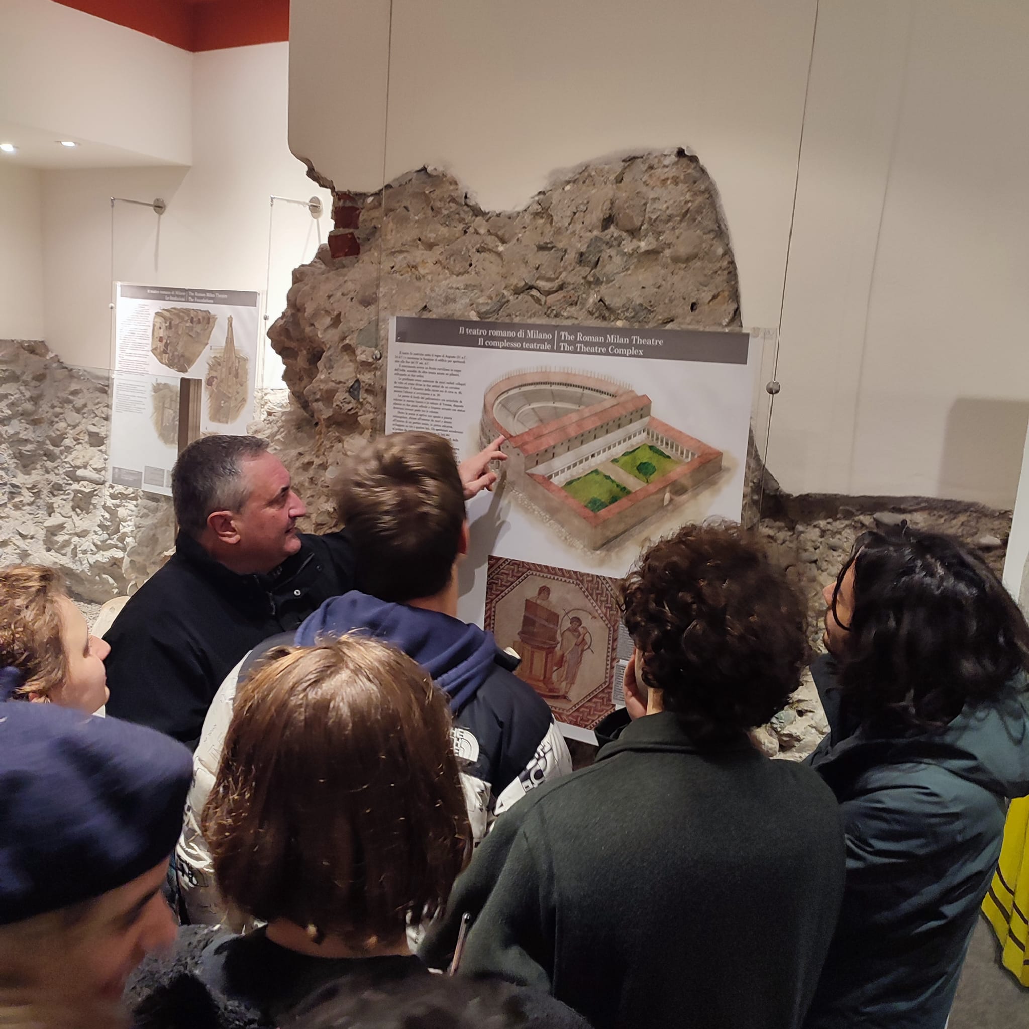 Con l’insegnante Erika Carretta gli allievi hanno visitato i resti del Teatro Romano che si trovano sotto la sede della Camera di Commercio di Milano. Ringraziamo la Camera di Commercio per le aperture gratuite al pubblico degli spazi del Museo.