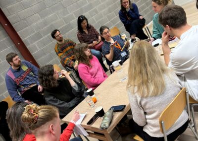 All’incontro hanno partecipato insegnanti provenienti da diverse scuole europee della rete, che hanno lavorato insieme agli allievi del terzo anno dell’INSAS, dando vita a un intenso spazio di ricerca e scambio sulle possibilità del coro come strumento teatrale, pedagogico e collettivo.